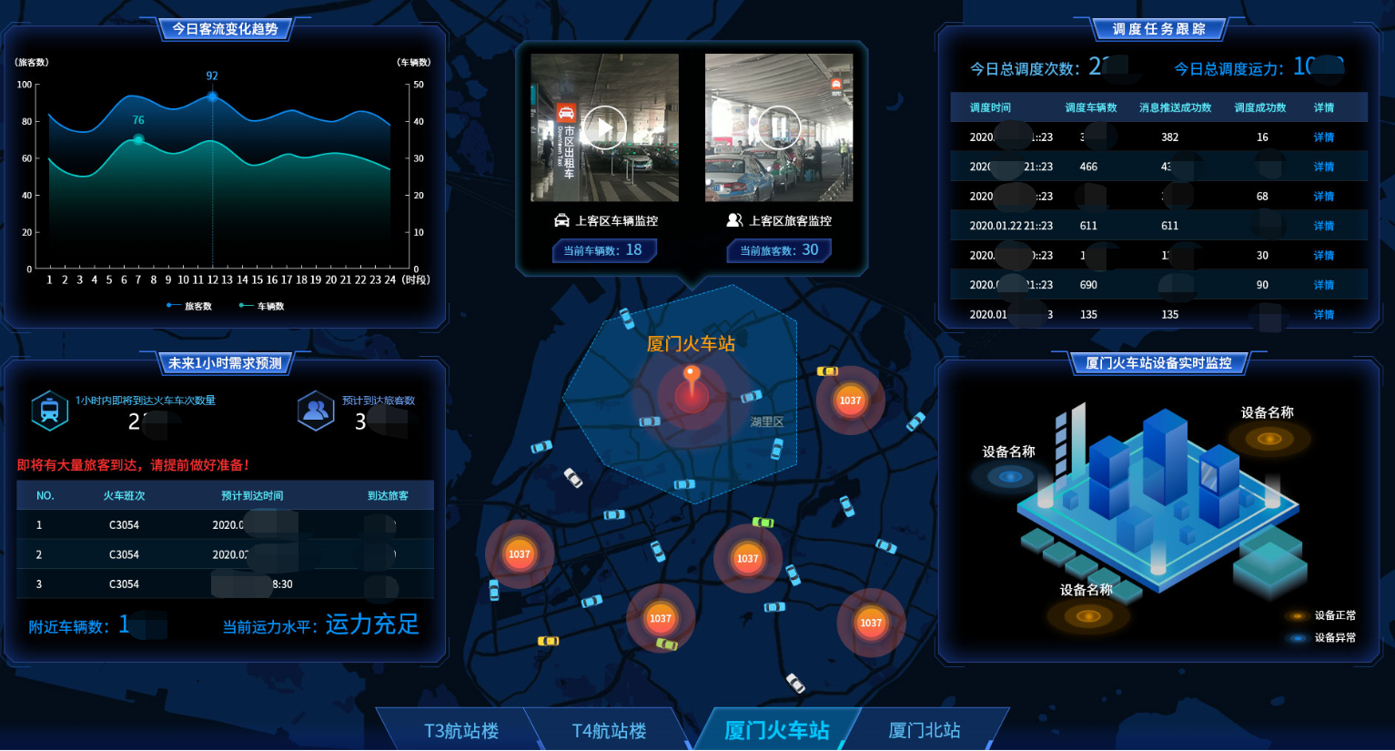 為了有效保障機場(chǎng)、火車(chē)站、綜合客運站等典型高密度人流聚集場(chǎng)所的客流疏運服務(wù),建設交通樞紐智能疏運保障系統,通過(guò)物聯(lián)網(wǎng)、信息化技術(shù),實(shí)現出租汽車(chē)運力智能疏運調度,提高區域樞紐疏運服務(wù)水平。